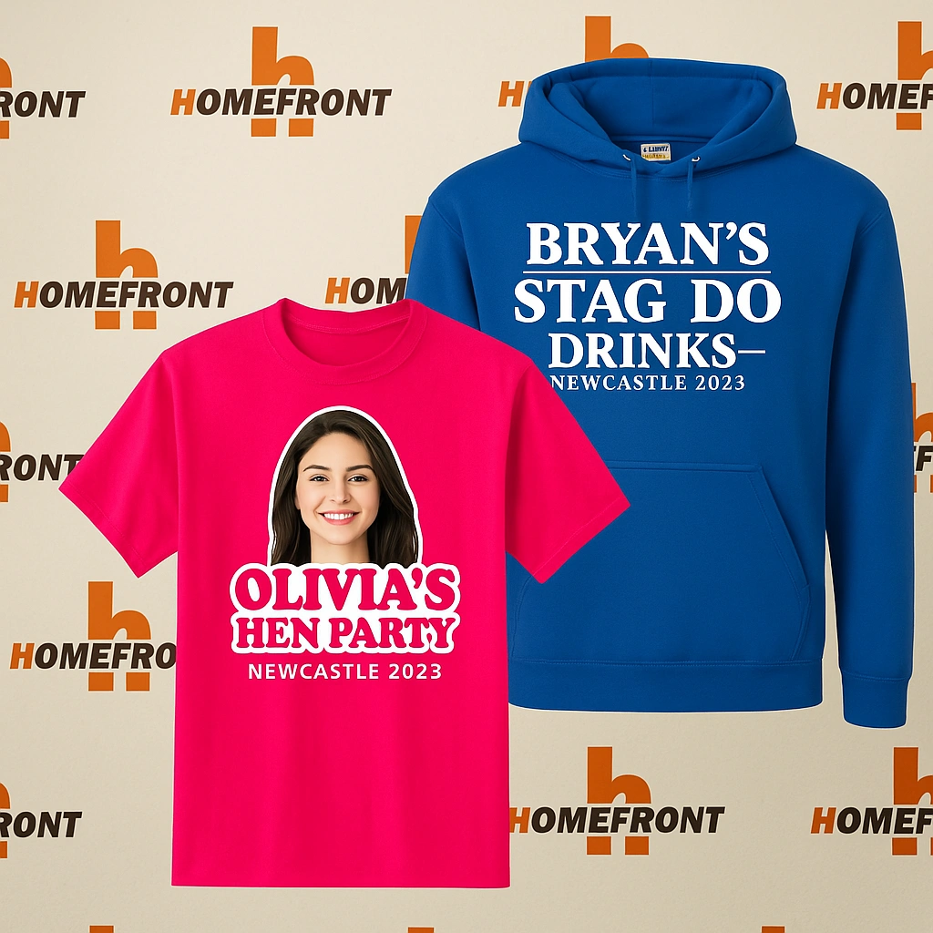 Make your Stag & Hen party unforgettable with personalised clothing from Forefront Branding. Whether you’re planning a classy hen night or a bold stag weekend, our custom t-shirts, hoodies, and sashes add the perfect finishing touch to your celebration.